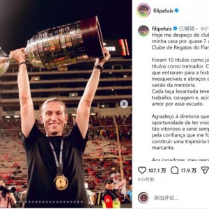 3月4日讯 弗拉门戈官方宣布主帅费利佩·路易斯离任,费利佩·路易斯社媒发文,与俱乐部告别。费利佩·路易斯写道:“今天,我...